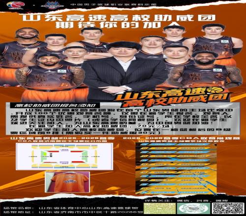 值得一提的是,1月25日晚,山东高速男篮将重返省体,迎来本赛季济南主场的首战。山东高速高校助威团将在每个山东男篮的主场比赛中开放100名高校学生助威名额,欢迎高校学生踊跃参与。