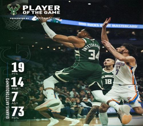 更关键的是,雷霆本场比赛没有内线中锋哈滕,雄鹿在内线原本是有优势的;但字母哥并没有疯狂像以往那样积极要位冲击对手禁区,反而只是简单的打卡下班一样走了个过场。